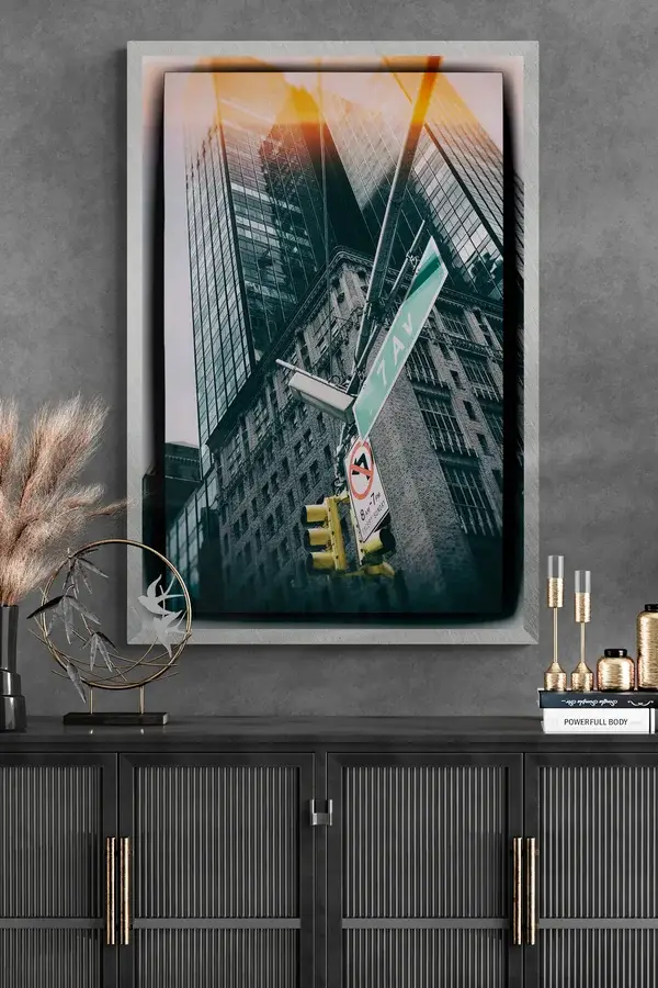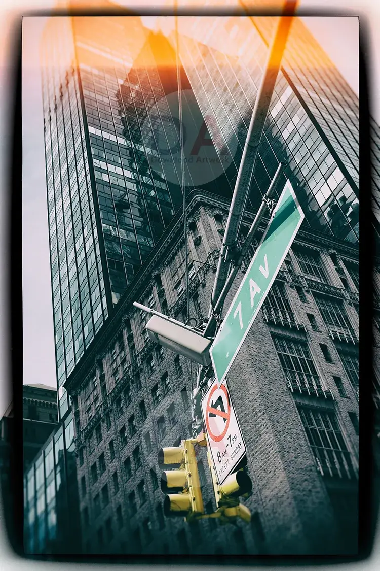 This printable art is a stunning photograph of a 7th Avenue sign with a retro and orange light flare effect. The artist, Seeress, captures the beauty and majesty of the urban landscape with a vintage touch. This art piece is perfect for anyone who loves cityscapes, architecture, or retro style. You can print it on any size and material you like, and decorate your home or office with a unique and eye-catching artwork.