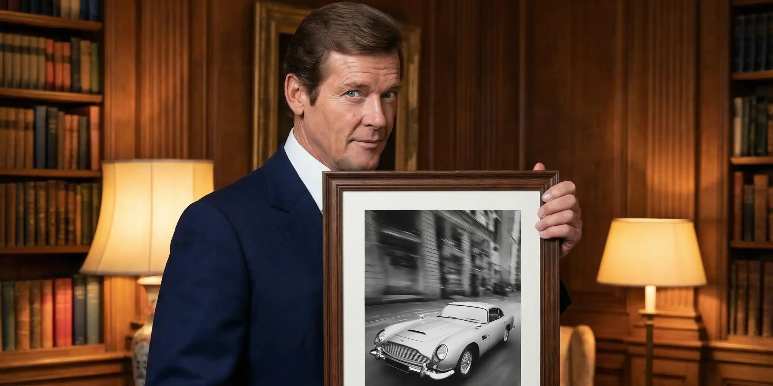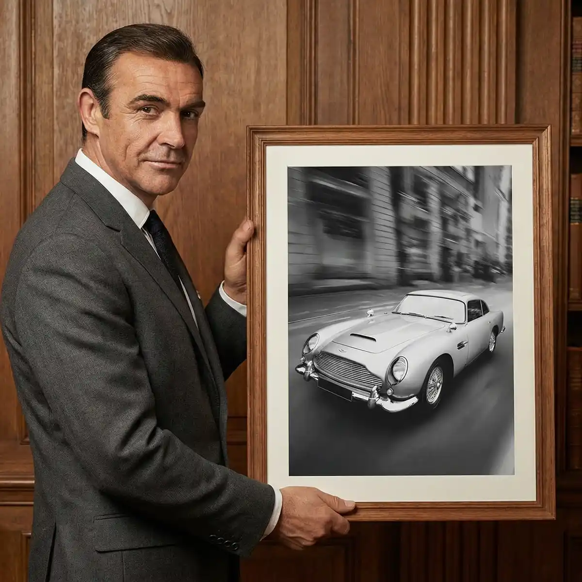 Classic 007 Style: Bold Black & White Aston Martin Retro Art Print