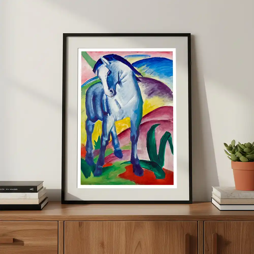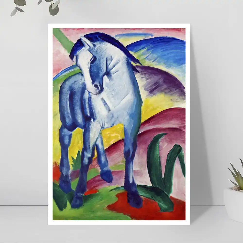 Own a piece of art history, reimagined for the contemporary home. This is not a simple reproduction; it is Franz Marc’s iconic Expressionist masterpiece, ‘Blue Horse I’, digitally remastered for modern printing. We have meticulously removed age-related blemishes, dynamically enhanced the contrast to make Marc’s vibrant blues and powerful forms sing, and refined the crop to a harmonious 5:7 aspect ratio perfect for home display. This process revitalizes the painting’s emotional and spiritual energy, bringing the symbolic power of the blue horse—representing spirituality, masculinity, and a connection to nature—into your space with stunning clarity.