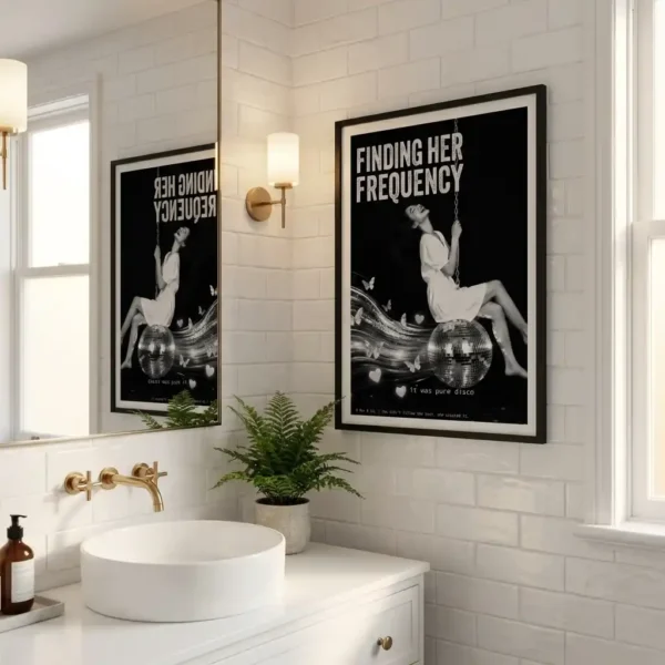 This stunning piece of digital wall art is a symphony of symbolic joy. Rendered in expressive black and white, it depicts a woman swinging on a disco ball, unleashing a torrent of butterflies and hearts. This downloadable poster isn’t just about dancing; it’s about finding your own vibration in the world and having the courage to let it shine. It’s a celebration of finding your rhythm, your joy, and your own unique spark.