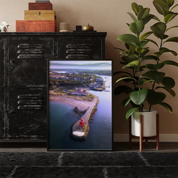 Elevate your space with this breathtaking aerial photography print showcasing South Shields’ historic Herd Groyne Lighthouse from a stunning overhead perspective. Captured by Michael Paul Bennett, this artwork reveals the lighthouse’s unique character against the dramatic North Sea waves, blending documentary precision with artistic composition.