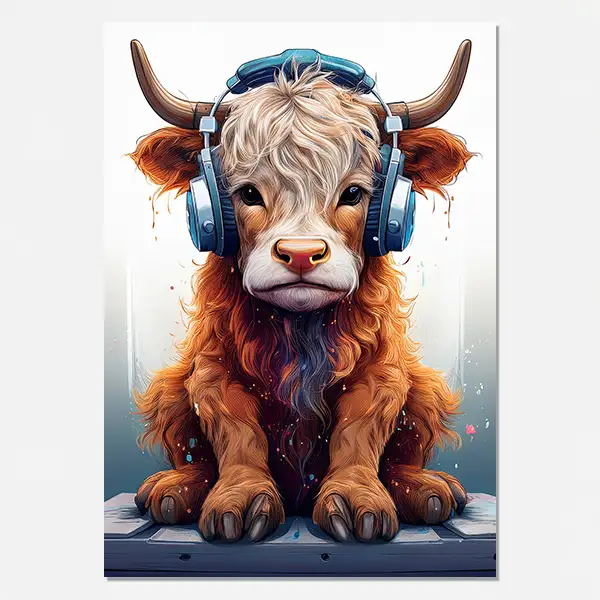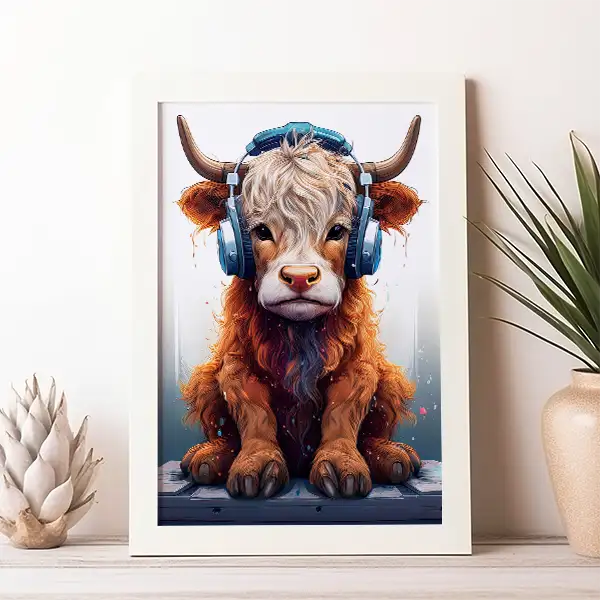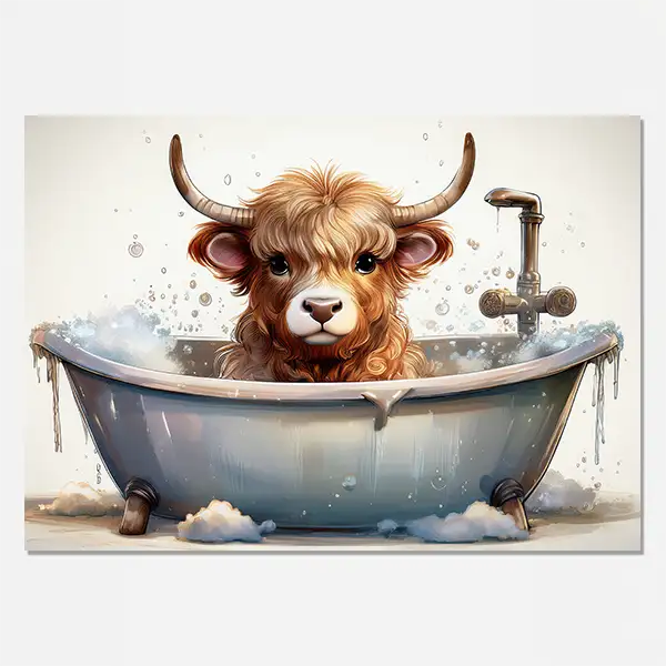 Bring charm and humor to your walls with this adorable set of 4 highland cow digital illustrations, featuring these fluffy cuties in hilarious bathroom scenarios—soaking in the tub, sitting on the toilet, or jamming out in headphones! Created by Michael Paul Bennett using his original artwork “The Beast” as inspiration, these playful designs blend AI artistry and Photoshop mastery for a one-of-a-kind aesthetic.