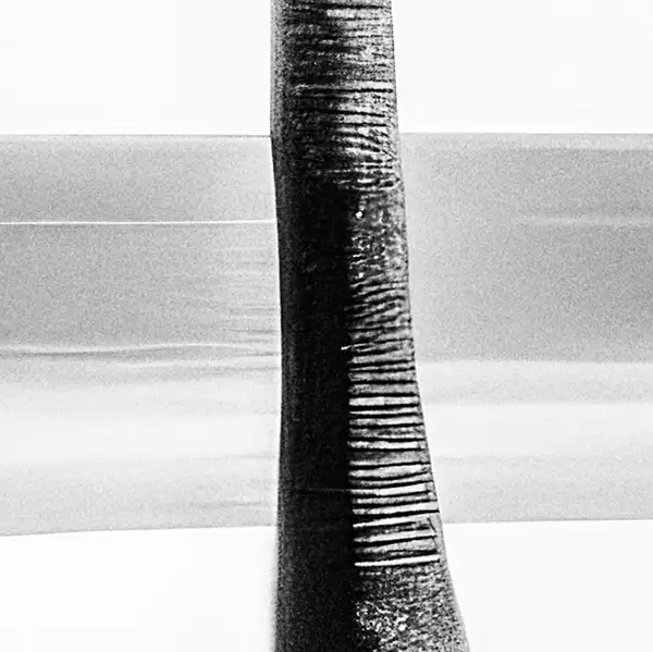 Transport yourself to a tranquil beach getaway with this striking black and white palm tree art print by Seeress. This digital illustration/photo fusion features three graceful palms on a sandy shore, their silhouettes dramatically rendered in Seeress’ signature film noir style against a serene sea backdrop.