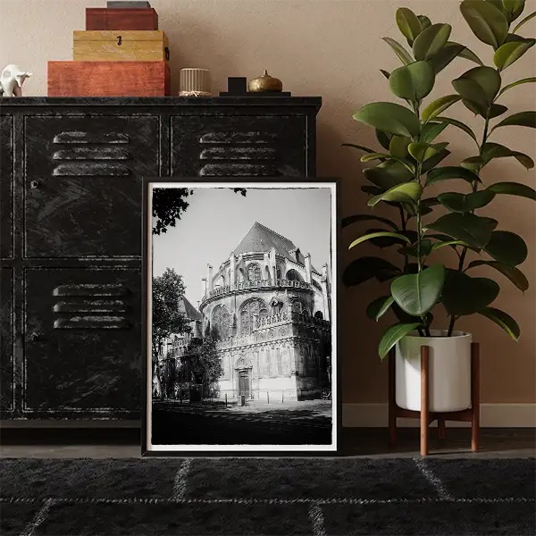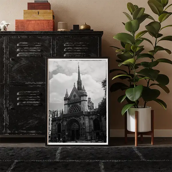 Experience Paris’ sacred architecture through a cinematic lens with this set of 2 printable artworks featuring Gothic churches in dramatic film noir style. Captured by Seeress, this collection reveals towering spires and flying buttresses emerging from the ancient buildings.