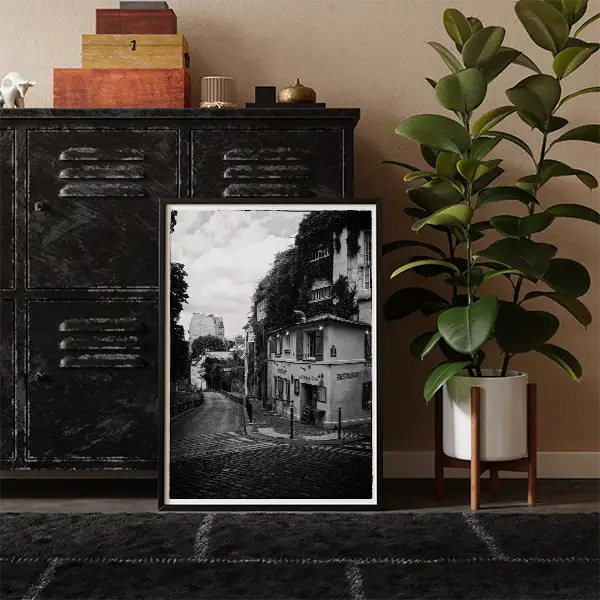 Walk the shadowy lanes of Paris’ most atmospheric quarters with this set of 3 printable artworks capturing Le Marais and Montmartre in dramatic film noir style. Photographed by Seeress, this collection reveals:
