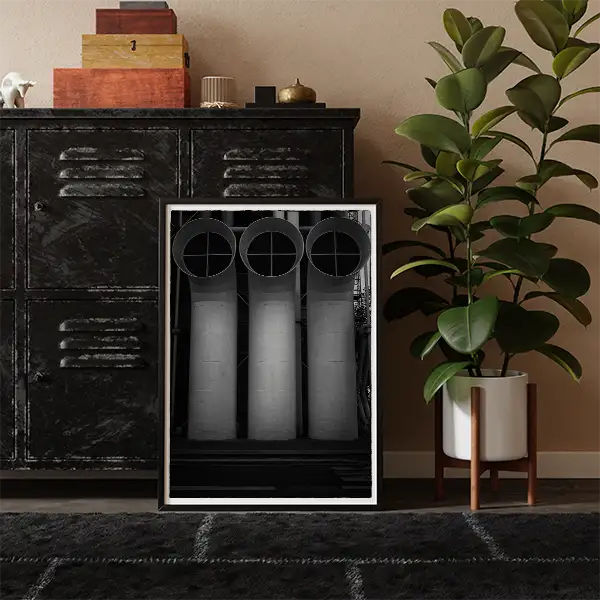 Discover the hidden beauty of Paris’ most radical architecture with this set of 2 printable artworks showcasing the Centre Pompidou’s iconic pipes in dramatic film noir style. Captured by Seeress, this collection features: