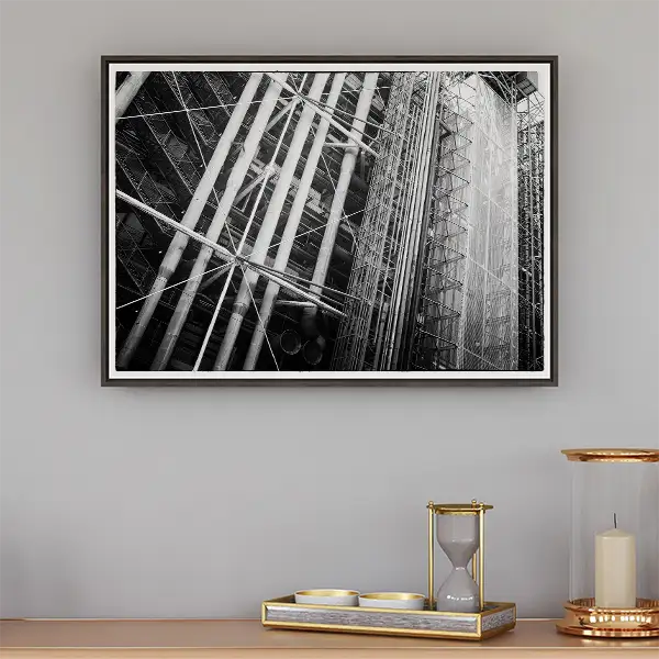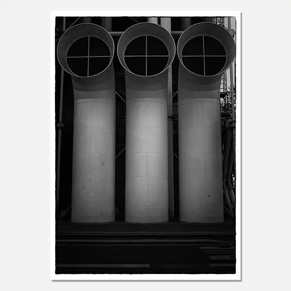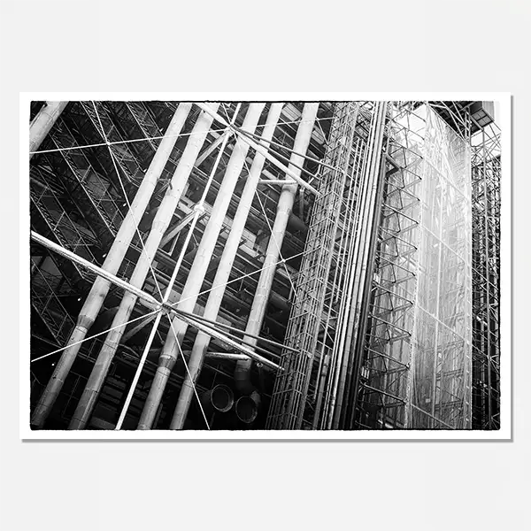 - Geometric Pipescapes – The building’s famous exterior tubing in stark monochrome