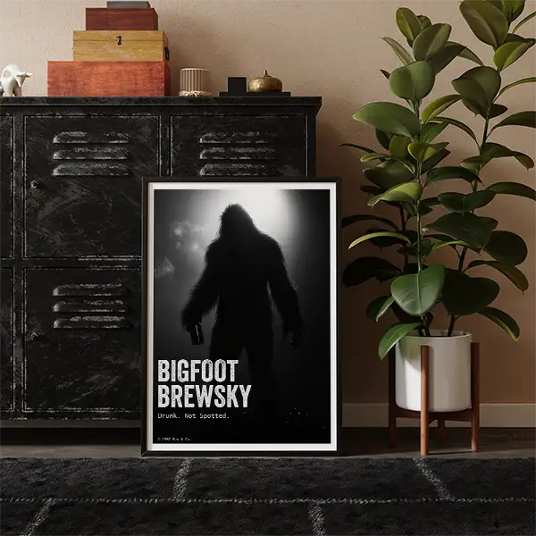 Ideal for searches like “cool Bigfoot posters”printable beer art, or “cryptid bar decor” – because some truths are better left unfocused.