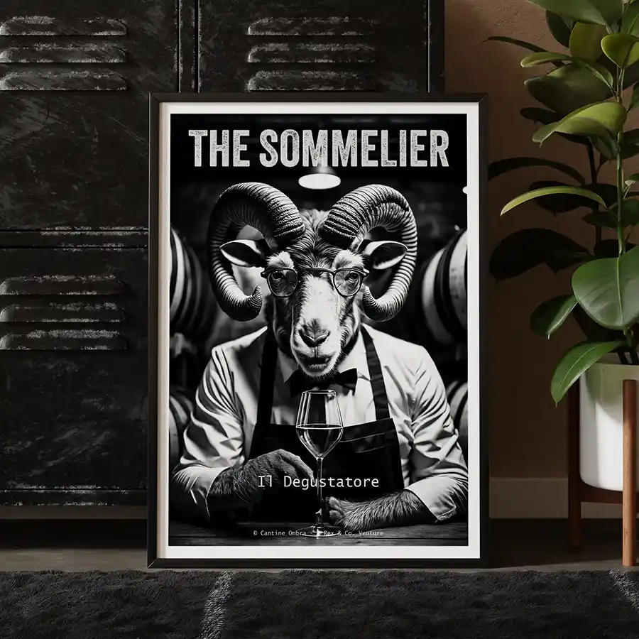 This piece of digital wall art captures a moment of quiet expertise. Rendered in the collection’s stark, high-contrast black and white, the ram sommelier is the epitome of taste and discernment. This downloadable poster proves that even in a world of chaos, there’s always a place for impeccable style and a refined palate.