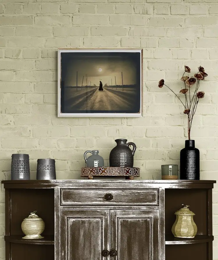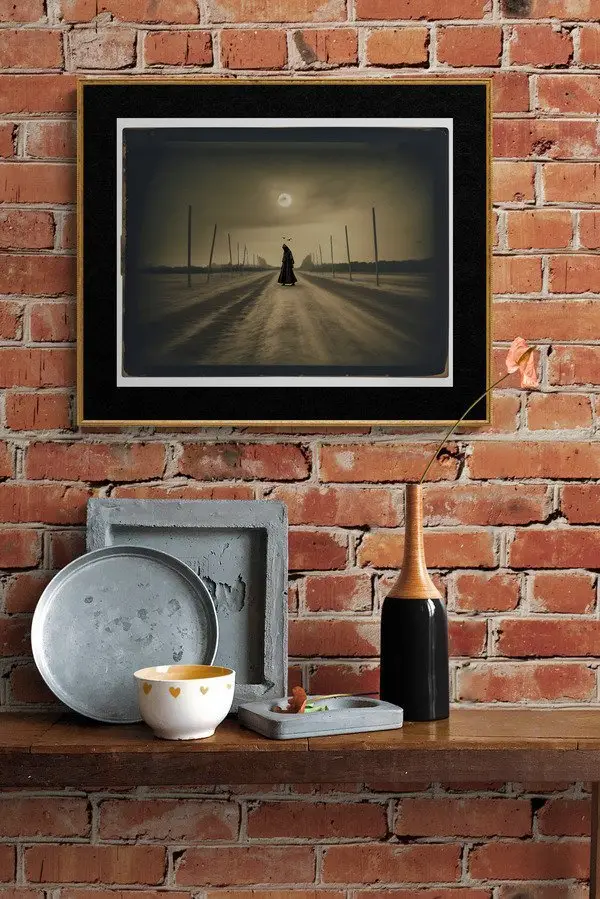 Bringing you the ultimate dark academia and Halloween prints. This witchy room wall art by Seeress depicts the Grim Reaper staring at you from down a deserted road. Created to reflect a vintage photograph, this witchy room printable wall art is perfect for lovers of Gothic wall art and dark academia wall art or for those who simply want some fun Halloween art to their wall.