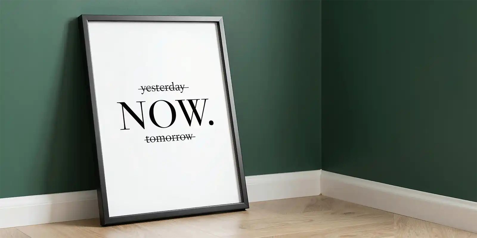 Yesterday Now Tomorrow Digital Print in Large frame leaning on green wall